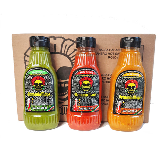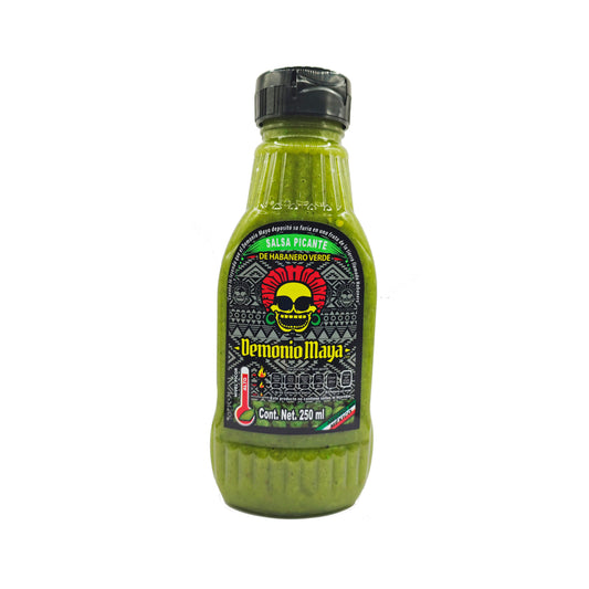 Demonio Maya conserva los tradicionales habaneros verdes, rojos y naranjas con una receta artesanal que pasó a través de generaciones de Mexicanos con el sabor y picor exactos para acompañar todo tipo de comidas.